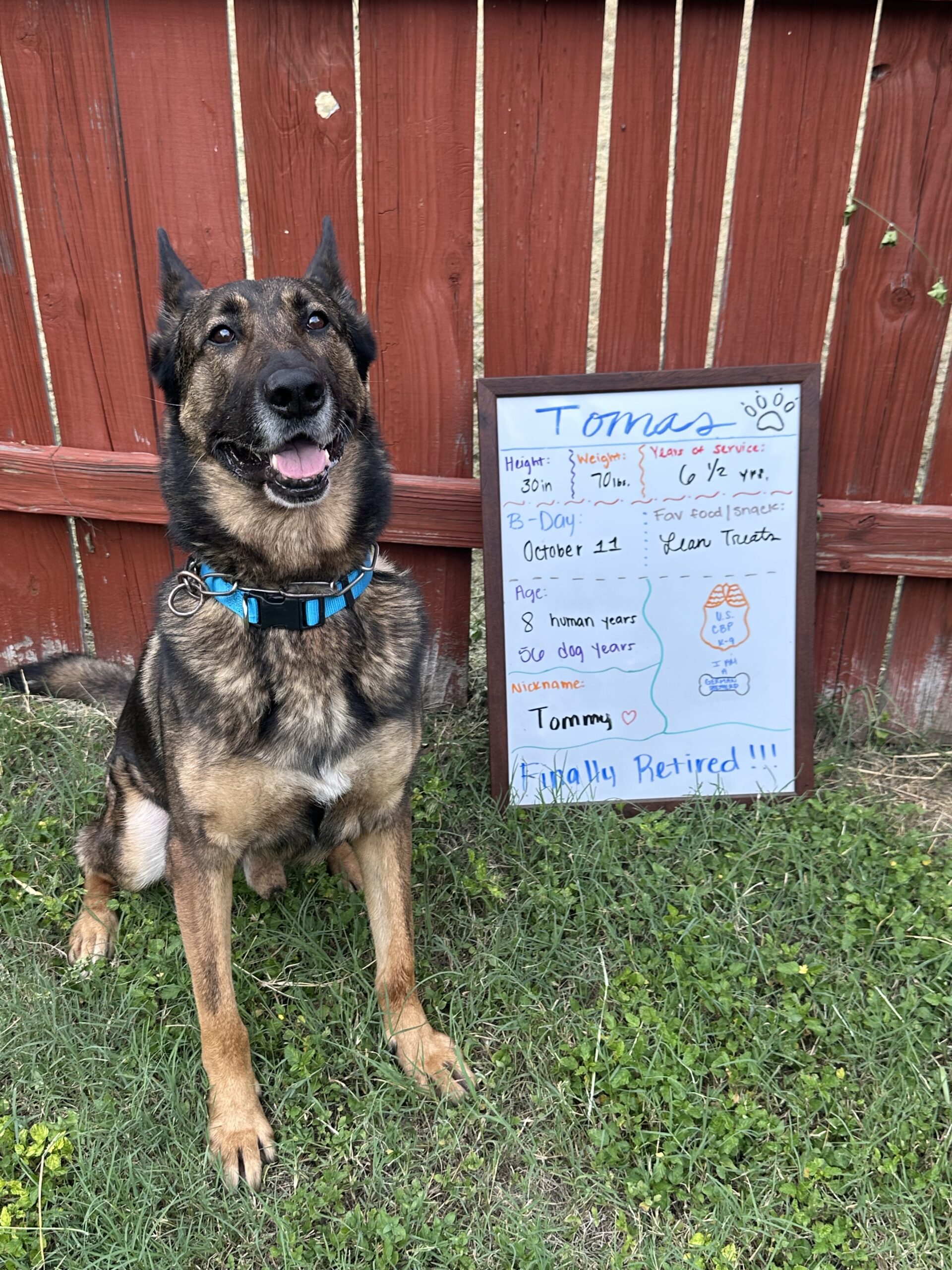 CANINE ALFA WORKED FOR U.S. CUSTOMS AND BORDER PROTECTION FOR A TOTAL OF TWO YEARS. WITHIN THAT TIME FRAME, CANINE ALFA WAS INVOVLED IN NUMEROUS NARCOTIC SEIZURE AT THE PROGRESO, TEXAS PORT OF ENTRY. CANINE ALFA WAS MEDICALLY RETIRED DUE TO BEING DIAGNOSED WITH HIP DYSPLASIA. CANINE ALFA CURRENTLY LIVES HAPPILY AT HER FORMER HANDLERS HOME, IN WHICH SHE ENJOYS THE COMFORT OF LIVING INSIDE AND GOING TO THE BEACH QUITE OFTEN.
