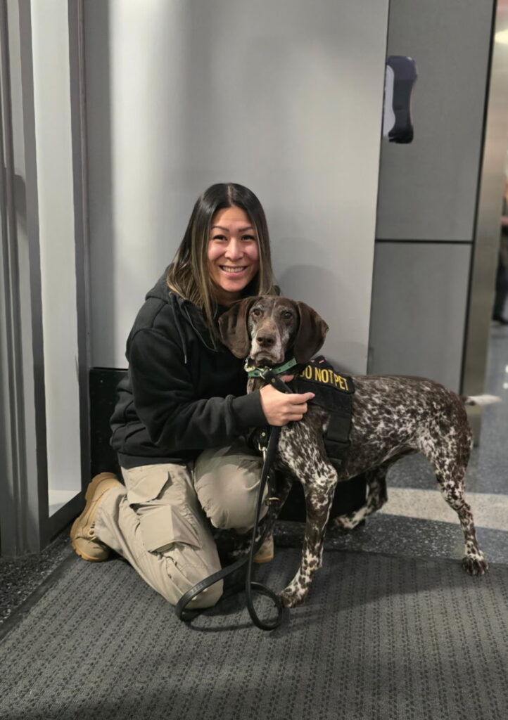 Bonna is a 10 years old German Short-haired Pointer from Boston Logan Airport. Bonna is an explosive detection canine graduated from TSA Canine Training Center in Lackland Airforce Base, San Antonio Texas in May 2017. Bonna has been to New Orleans airport (MSY) to help with ESSENSE festival. Bonna was also deployed to Philadelphia airport (PHL) to help with the refugee special operations. Bonna loves training with all different agencies including FBI, ATF, CBP, MSP, ETC.