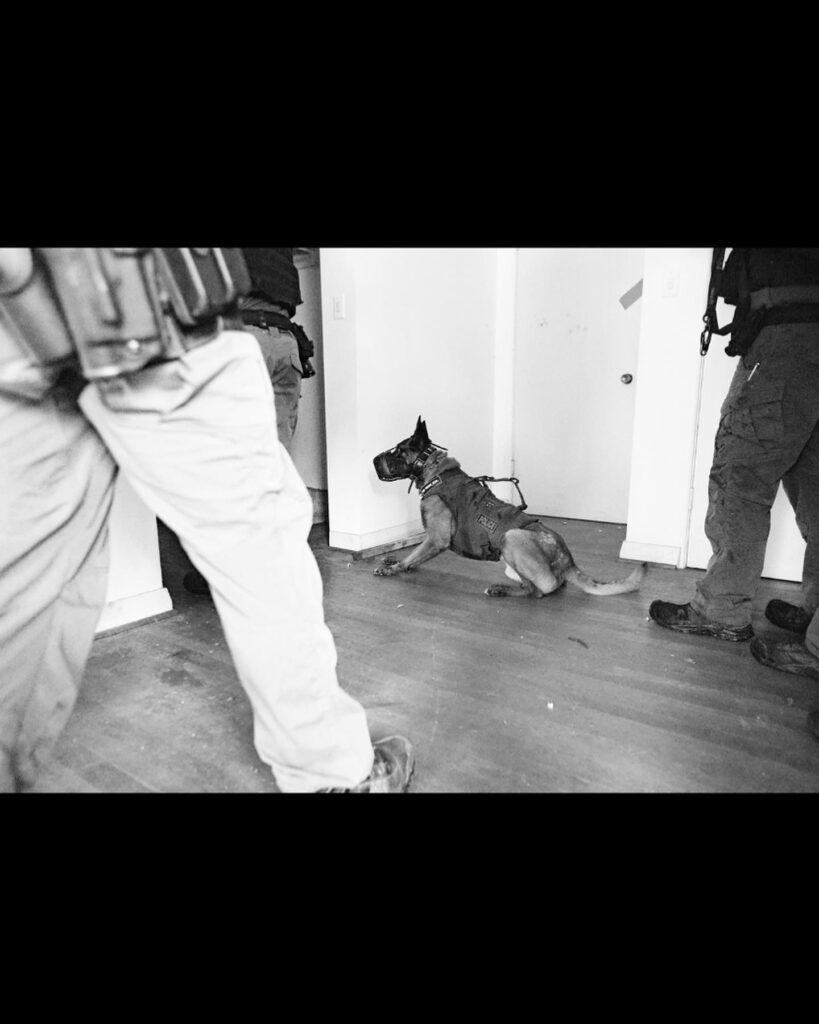 Cash has been a dual purpose narcotics dog with me since June 2014. He loves building searches and working with swat more than anything. And as fierce as he is, he has no concept of personal space and will climb in your lap if you let him