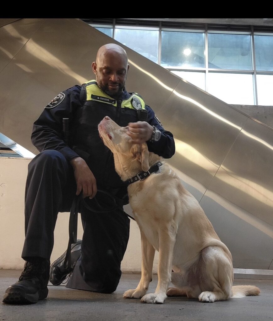 Cortes was born in Columbia South America. We trained together in Aniston Alabama when he was 18 months old. We worked in Amtrak’s Baltimore Penn Station and Washington Union Station until his retirement. He’s traveled to Philadelphia, PA and New York, New York for work. His favorite pass time is chasing a ball and fetching it back to me.