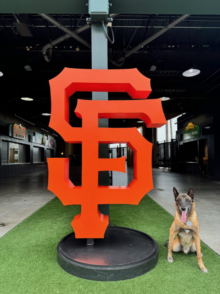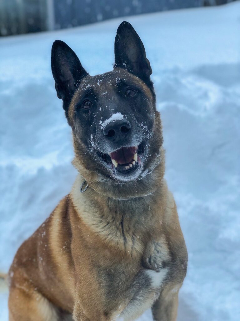 K9 D’Artagnan “Dart” served over 10 years as a dual-trained patrol and narcotics detection K9. He completed hundreds of deployments and was fortunate enough to work in locations such as Stanford University, YouTube and Oracle Park. Dart was a familiar face at public demos and community events. Off duty, he loves treats, tug-of-war, and snow days during family vacations to Lake Tahoe. Now retired, he enjoys a quiet life at home, although his new puppy sibling keeps him on his toes.