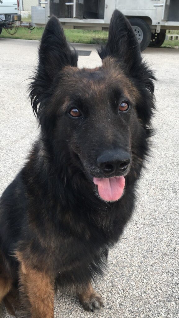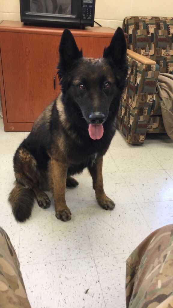RMWD Diesel is a 12 year old Belgian Tervuren who served as a Patrol Explosive Detector Dog. He served a total of 9 years in the United States Army at Fort Hood, Texas and deployed a total of 4 times with 4 different handlers, twice to Afghanistan, once to Qatar and once to Egypt. He completed numerous United States Secret Service missions in various locations such as New York, Chicago, Dallas, Houston to name a few. Diesel loves playing with his chuck-it ball and getting pets from just about anyone. He spends most of his retirement sun bathing with his sister in the yard, or begging for attention from his mom’s.