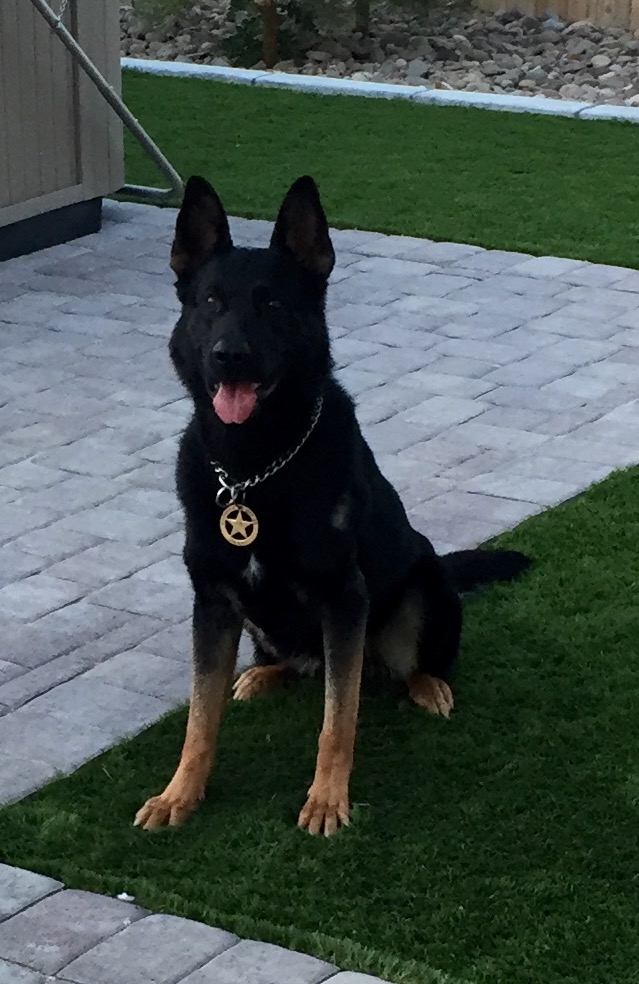 Drago is a black and tan German Shepherd. He was born in the Netherlands and came to America in 2013. Drago is cross-trained in narcotics detection, tracking of missing/wanted subjects, and criminal apprehension. With a personality befitting of his astrological sign, he is on the cusp of being a Taurus and Gemini. He can be stubborn as a bull and Drago has an unmatched drive to protect the citizens of Douglas County. On the other hand, his gentle nature comes out in his love for his family, children and his brother, Klous, the Pomeranian. Drago is a loyal partner to both his handler and all the deputies of the Douglas County Sheriff’s Office. Drago loves meeting the public, especially children at our local elementary schools. He enjoys rawhides, being scratched and starring at you while you eat. “He loves nothing more than going to work and Drago makes being a K-9 handler worth every minute of the job. It is a privilege to have him as my partner.”