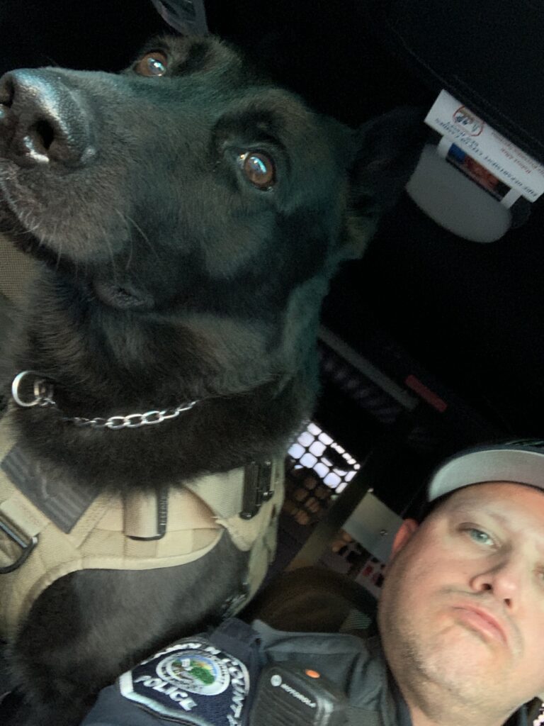 Fios is a retired narcotics K9 from the Camden County Metro Pd. He retired in July of 2022 after serving the residence for over 5 years. Through his career, Fios has had countless amounts of narcotics, firearms, and U.S. currency seizures. Fios and I started out on basic patrol and eventually moved into the more proactive street crimes unit. We also worked very closely with our under cover narcotics gang unit where Fios assisted in putting countless violet criminals in jail. Since Fios has been retired, he now spends his days chasing squirrels and other small animals in the yard. He has also found and earned his own special spot on the couch. Fios’ favorite treat at the moment is chicken jerky but there isn’t much he won’t eat. Fios is now the protector of his Momma and his sisters and takes his job VERY seriously!