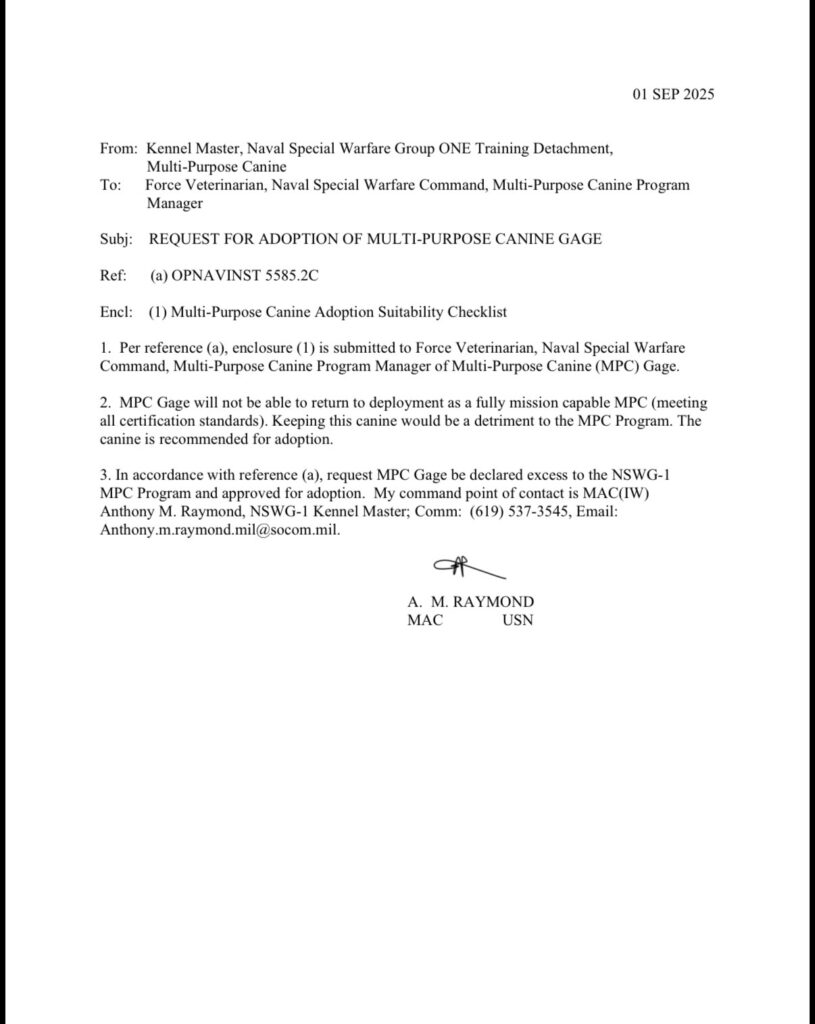 Naval special warfare working dog with 4 deployments to various combat zones around the world. Loves playing with his ball, and a fiend for getting scratches.