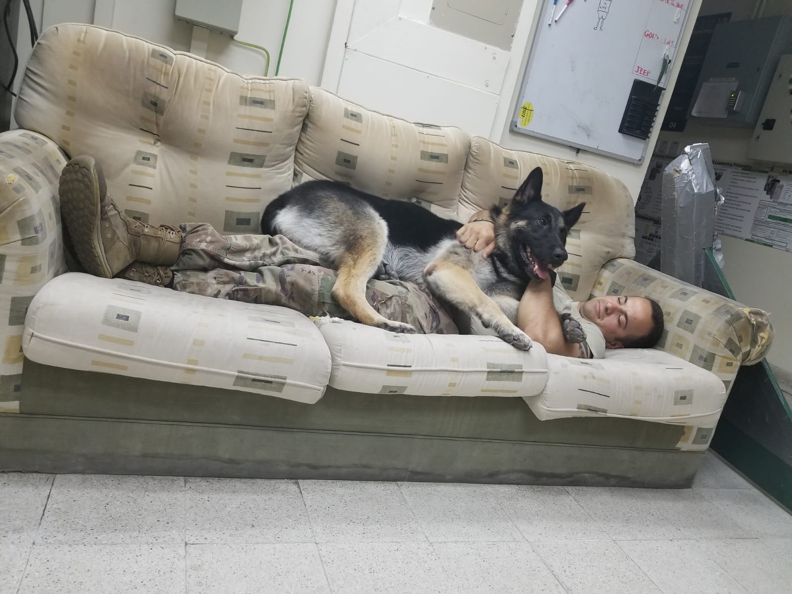 Gina spent much of her early career apart of the Navy’s “Puppy Program” in Lackland Air Force Base. After her time there, she transferred to NAVSTA Rota, Spain for the remainder of her career. In her time there, she deployed to Africa two times with different handlers, and assisted in various tasking’s such as NATO Summits ensuring the safety of those in attendance. Gina loves bacon flavored treats and attention from those around her! She still tries to move like a younger pup at times, running up to people with her toy and dropping it to play fetch!