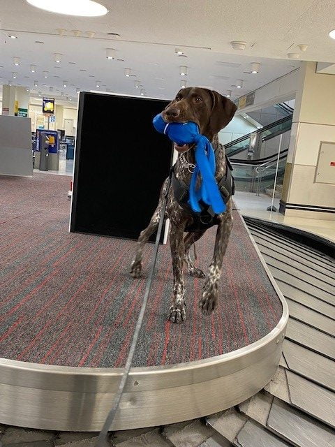 Gunner is yellow lab that thinks he is a mal. He is full of life and such a while and hard charger. He has gone on vacation with me to Florida and Mississippi which he enjoyed. He loved working. He finds drugs like a champion. Even now that he is retired he still will “hunt” for dope. He loves to play catch and he loves to get loved on by dad. Is is down time he likes to take up all the room on the couch and play with his little sister who is a Boston terrier. Gunner loves any food he can get in his mouth. He will eat anything.