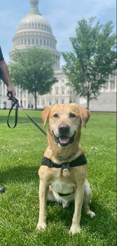 Hefe has worked 2 Presidential Inaugurations, 8 State of the Unions and countless special events to include foreign dignitary visits and gold medal ceremonies. His routine assignment was security of the US Capitol complex. Hefe’s favorite treat is anything that you’re eating to include lettuce. Hefe downtime loves are chewing bones, taking mom for a walk, chatting with neighbors and relaxing.