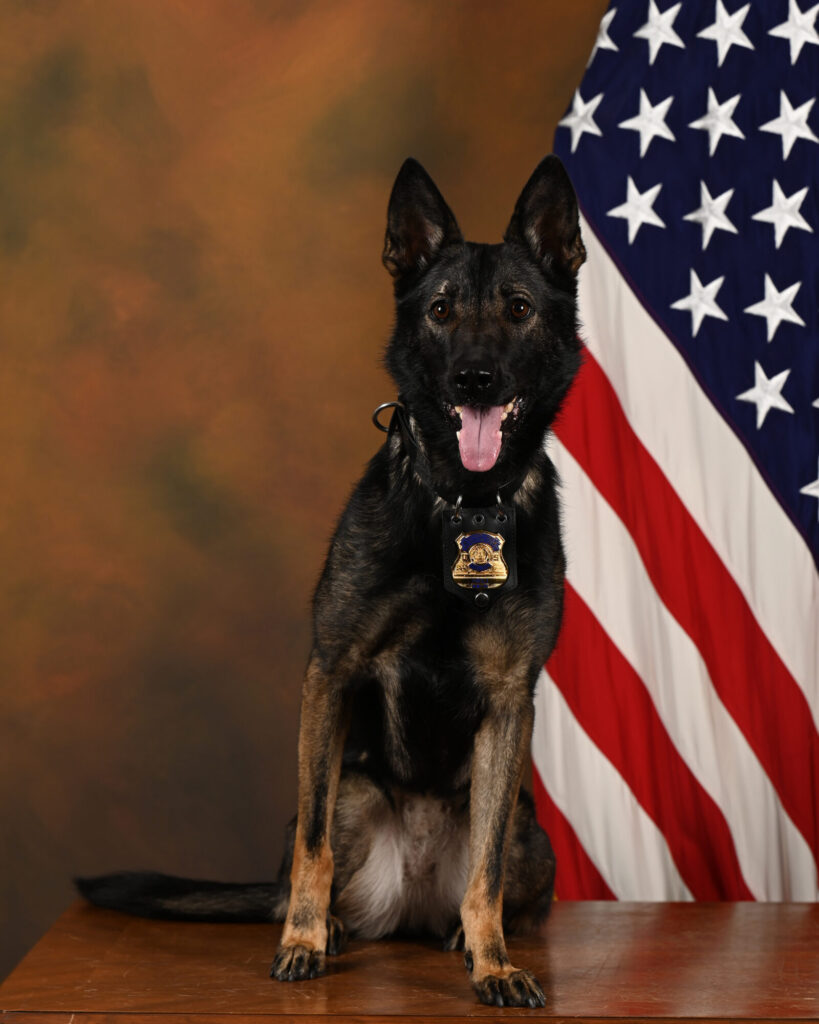 Heli was born on July 3, 2018 in Hungary. She is German Shepard/Belgian Malinois. Heli began her service as an explosive detection canine in November 2022. She retired, with her handler on December 31, 2025. Her favorite treat are Three Dog Bakery soft cookies. Her favorite chew toy is a Benebone. Her favorite toy is a kong. Heli enjoys long walks and hikes with her handler.