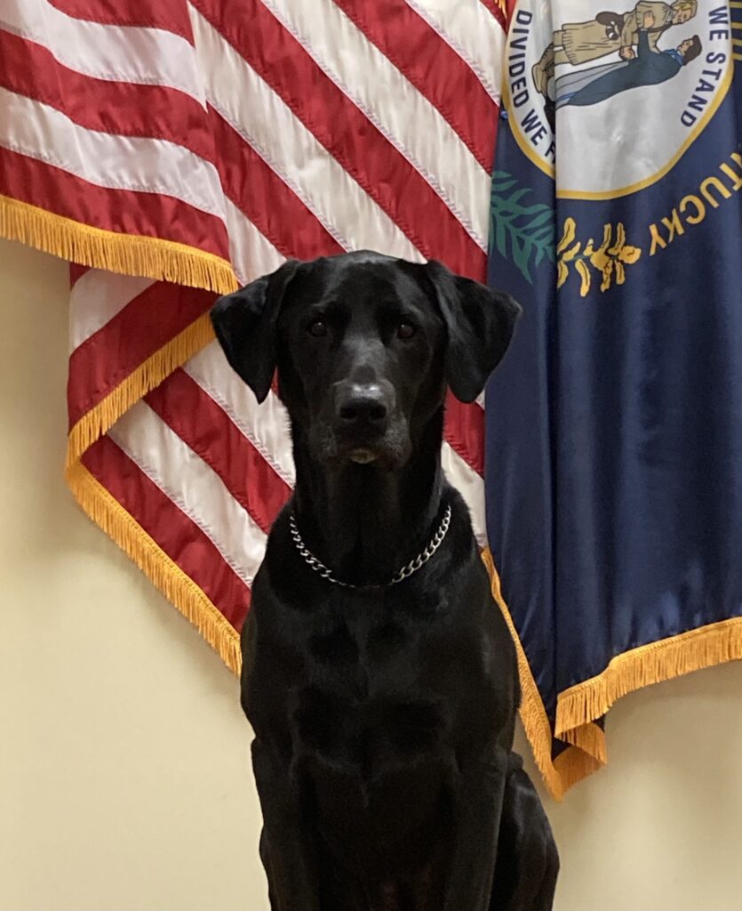 K9 Jade has spent almost her entire life with the Harrodsburg Police Department. She came to us when she was only a few weeks old and was assigned to me. We began training when she was old enough and she became certified without any troubles. K9 Jade patrolled with me for the extent of her career with the Harrodsburg Police Department and helped in numerous drug seizures. K9 Jade has also assisted other agencies in locating narcotics when called upon. It has now reached the bittersweet point in K9 Jade’s career for her to retire. So far, K9 Jade has not got to travel much, but we hope to change that soon! Being a Lab, K9 Jade is not very picky when it comes to treats and will help clean the kitchen floor if you are not fast enough. K9 Jade is an avid sleeper and able to make herself comfortable even when there is not enough room. She also loves to swim, play in the snow, and play with tennis balls, Chuck-It balls, and frisbee’s. She is very affectionate with a heart of gold that can win anyone over.