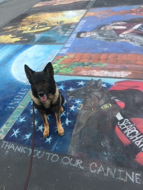 K9 Jake was born in New Jersey and shipped to Los Angeles California. He worked his entire career for the Santa Barbara Police Department as a dual purpose patrol/narcotics canine. His favorite treats are “Greenies” and he is enjoying his retirement years with his pal Feather a 4 year old Black Lab.