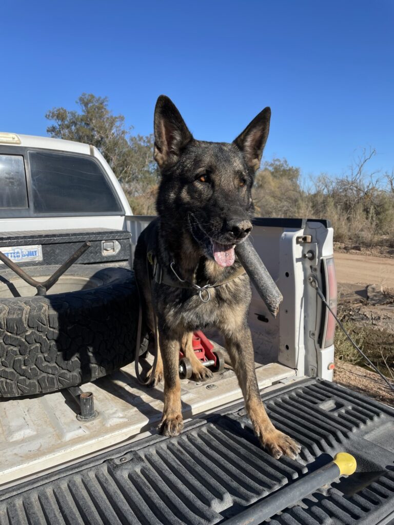 Jinthe is a retired concealed human/narcotics detection canine. Jinthe retired from the US Border Patrol canine program in June 2022. While working as a detection canine, Jinthe was responsible for seizing hundreds of pounds of illicit narcotics and dozens of concealed human apprehensions. Jinthe worked at one of the busiest checkpoints in California as well as in the brutal desert terrain and weather of the Imperial Valley.