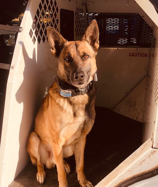 My partner Lobo is a 6 year old Belgium Malinois that has retired unexpectedly from an injury resulting during training. During the short time of Lobo’s service he has countless narcotics arrests and property seizures resulting in paying for himself within the first week of his service. Lobo also has made apprehensions of fleeing suspects and played a role in charges against felons possessing firearms. Lobo loves his four mini-Australian Shepherd sisters and chewing on his favorite ball.