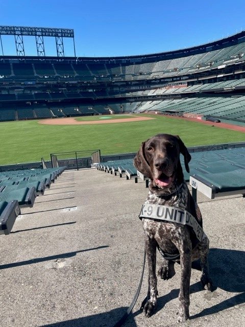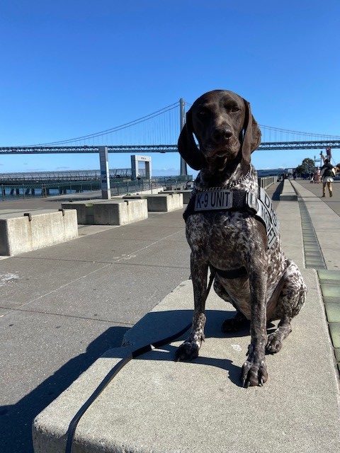 K9 Mala served as an explosive detection canine from 2020-2023 with TSA in San Francisco. Although she had a very short career, she was requested to assist multiple federal agencies in high profile events all over the Bay Area and assisted her teammates in Portland. K9 Mala was always eager to attend any trainings she could get to! She brings endless joy and laughter to every person she encounters as she is all love and is very very silly, but when it came down to work, she was laser focused and always on point. K9 Mala’s favorite thing to do is run & play fetch with her new sister, K9 Cila, and her brother, retired K9 Ryker. Mala loves to go to her brother’s toy bin and take ALL of his toys out and chew up as many as possible. She also really loves her new queen size bed & a sofa that she’ll share with her mommies on occasion.