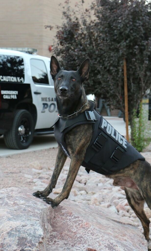 K9 Mick was born in the Netherlands in 2012 where he was raised and trained for the sport of KNVP. After being awarded his PH1 title, Mick was sent to the America to begin his career as a police dog. K9 Mick was purchased by the Mesa Police Department in June of 2015. After graduating the Mesa Police Departments Patrol Dog Academy with his assigned handler, Mick worked as a patrol and SWAT dog. The following year Mick was trained for narcotics detection. MIck served the Mesa Police Department as a dual purpose patrol/SWAT and narcotics dog for approximately 5 years until he retired with his handler in 2020. Mick was known for being a very well balanced, hard working police dog. He located a suspect hiding inside a storage shed on his very first deployment after the academy. MIck had numerous successful suspect finds/apprehensions and narcotics finds during his career as a police dog. During is time off, Mick enjoyed playing Frisbee, swimming in the pool and playing with his best dog friend, Maddie the Jack Russel Terrier. He enjoys these same activities in retirement. Since retirement Mick has had the opportunity to travel the country with his handler to assist with training other police dog teams.