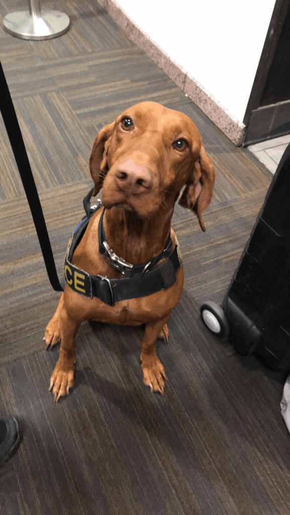 First assignment was Jan. 21, 2014 at LAX with first handler. Assigned to El Paso International Airport on Jan. 09, 2016 until her retirement date of March 09, 2021. Mira’s specialty is in explosives detection and trained at Lackland Air Force Base as part of the National Explosives Detection Canine Team Program (NEDCTP). Mira is a people loving canine, soft hearted and loves attention. Mira’s job varied from daily duties at the airport to requested canine sweeps for dignitaries, concerts and of course threats to public safety. Mira loves to snack on carrots and bananas. Of course she loves to lie around the house, as she’s earned “in the house” status.