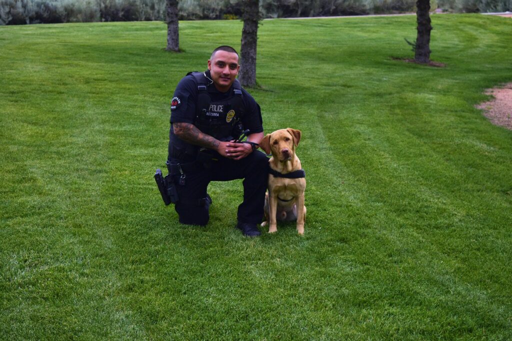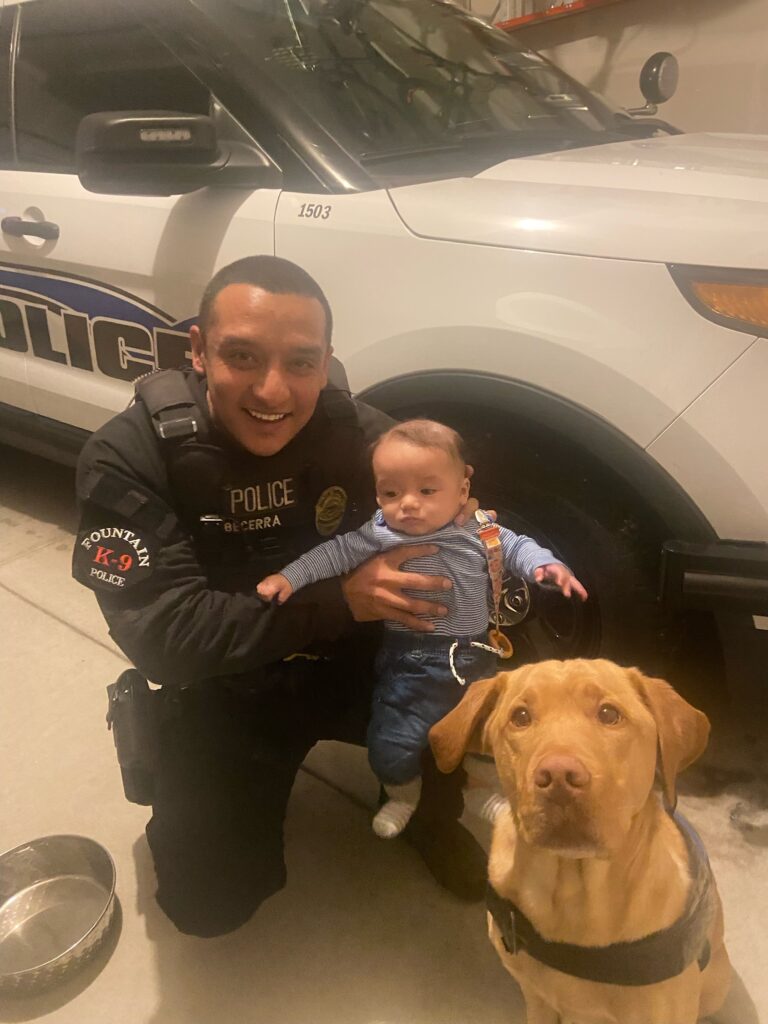 Moody became a member of the Fountain PD K9 program after flunking out of a service dog program, he made it as far as the final testing phase but was clearly to high drive to be a suitable service dog. Moody received a new job and a new name when he arrived in Colorado. He was named Luther, not a great fit, FPD and the city of Fountain took a vote, Maverick, the other K9 at the time was named Goose, or Moody in honor of FPD’s only fallen officer. Votes were cast and Moody was officially renamed. Training started and went great, Julian and Moody got certified in October of 2020. After training it took them awhile to find their groove as a team. Julian put in a lot of extra time and training to make Moody a solid drug dog, there were often days when Moody was reluctant to go to work, not wanting to leave his spot on the bed. Moody was officially retired in January of 2023 after mushrooms became legal in Colorado. We lost Julian to a line of duty death the following month. Our 3 year old son loves playing with his police dog, they take bad guys to jail together. Moody holds a special place in our family and our PD family and is a constant reminder of Julian’s passion for the K9 program. Since retirement Moody has enjoyed a life of leisure. He spends his days napping, cleaning up after our son, those are always the best treats, and going on walks, playing fetch, and swimming.