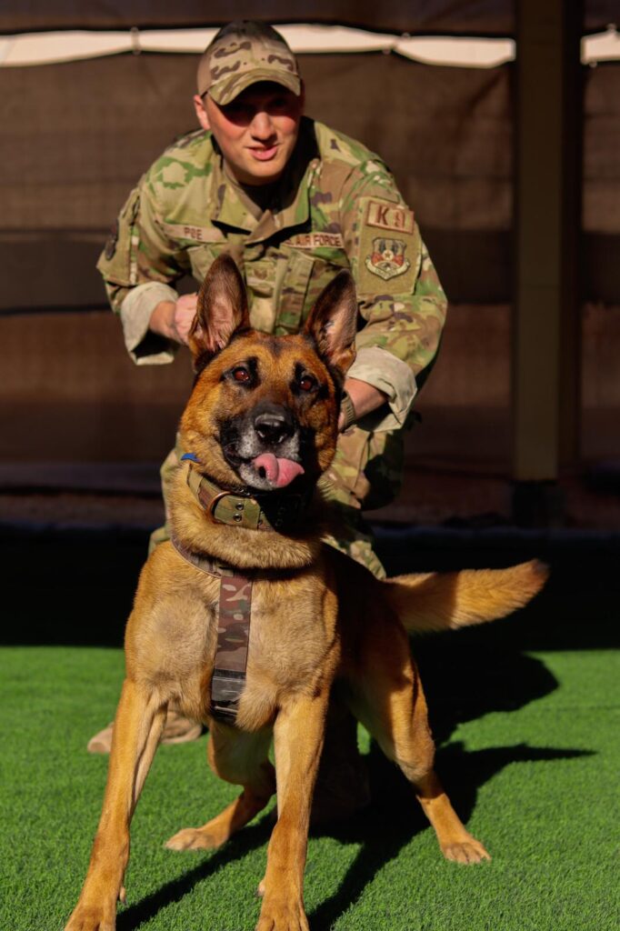 Has supported over 30 United States Secret Service Mission for the POTUS and VPOTUS, including two Presidential Inaugurations, Democratic and Republic Conventions, President Carter’s Funeral, President Biden’s and Trump’s Farwell Address. Deploying in support of Operation Inherent Resolve and Operation Spartan Shield with real world explosive find. Traveling all over the world from Mexico, Poland, Angola, Jordan, Germany, Kuwait, Qatar and majority of all states inside the USA. Famous for laying down crossing his paws like a gentleman everytime, never wanting to let go of the bite sleeve, wanting to run away and explore when off leash, when riding in a car NEEDS to be in drivers lap, known to be a ladies man, and finally for being a very happy loving boy.