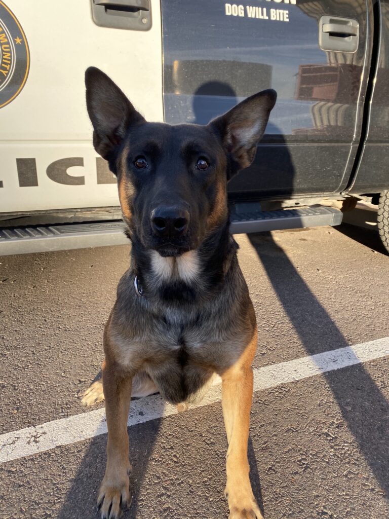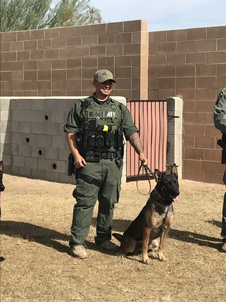 NARCOS WAS BORN IN 2016 IN NETHERLANDS AND BROUGHT TO ARIZONA TO BE A WORKING K9. NARCOS IS A POLICE SERVICE DOG FOR GILA RIVER INDIAN POLICE DEPARTMENT. NARCOS IS CERTIFIED DUAL PURPOSE (DRUG DETECTION AND SUSPECT APPREHENSION). NARCOS AND HIS HANDLER ALSO ASSISTED OTHER LAW ENFORCEMENT TACTICAL TEAMS. NOW THAT NARCOS IS RETIRED, HIS FAVORITE ACTIVITY IS CHILLING BY THE POOL AND SWIMMING WITH FAMILY MEMBERS.
