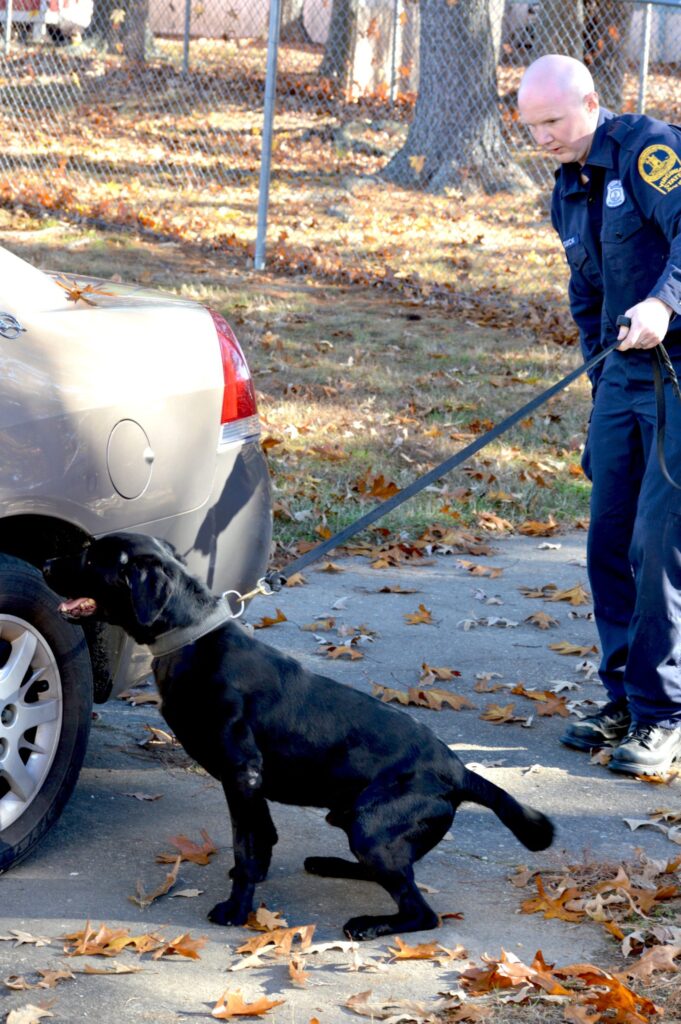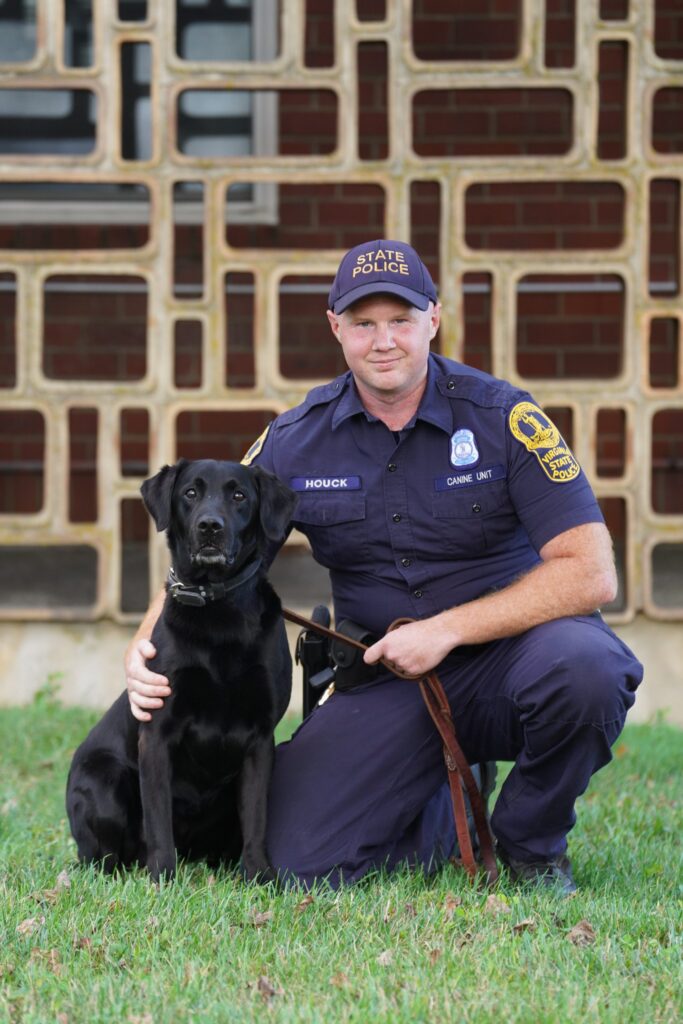 Onyx is a 10 year old black Labrador Retriever who worked as an Explosive Canine for the Virginia State Police for four years. Onyx’s favorite activities are playing fetch, taking naps, trying to steal food, and pretending he is a lap dog.