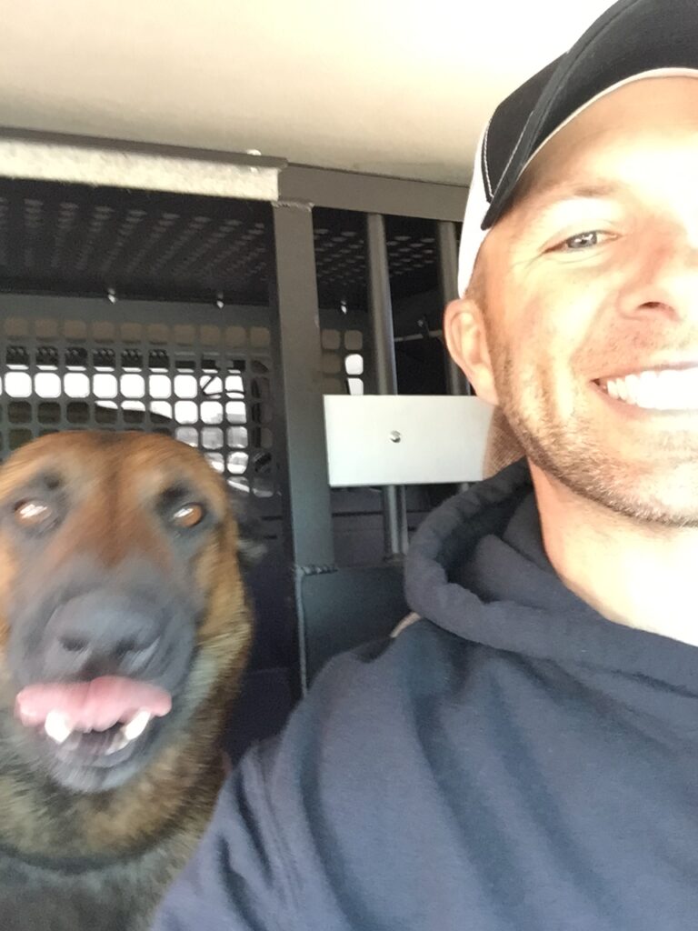 I’m sure every handler feels that their dog is top notch. I am here to tell you that Q really is an amazing pup. If Q were to ever go to a tattoo parlor, he would be getting a tattoo of a tennis ball. He is responsible for taking hundreds of pounds of controlled substances off of the streets. Q is a sole purpose narcotic detector dog. The majority of Q’s work was done within West Valley’s borders here in Utah. Q has also worked at the Salt Lake International Airport in both Domestic and International flights. Q worked for Homeland Security Investigations (HSI). Q has worked the Border ports of San Ysidro and Otay Mesa where Mexico feeds into the United States. Anytime Q would have a significant drug bust while working the road, I would take him to McDonald’s drive-thru. I would order him a cheese burger happy meal. Needless to say, Q has had plenty of cheeseburgers over the years. Q’s nemesis are kitty cats. Q performs flawlessly and knows several commands; however all of these go right out the window when cats are around. When Q isn’t on the clock, he is a lover of family and anyone willing to pet him behind his ears.