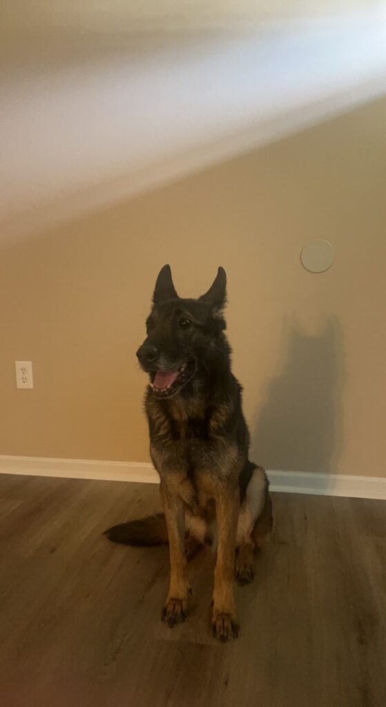 MWD Rambo is a dual purpose German Shepherd but had issues with anxiety. And ended up being retired because of it. So his canine career was mainly kept in Georgia with no deployments because of it. He loves all treats lol. Especially when my daughter is eating, he will sneak and try to steal her waffles. He is really calm and will just lay down and hang out. He loves runs and long walks.