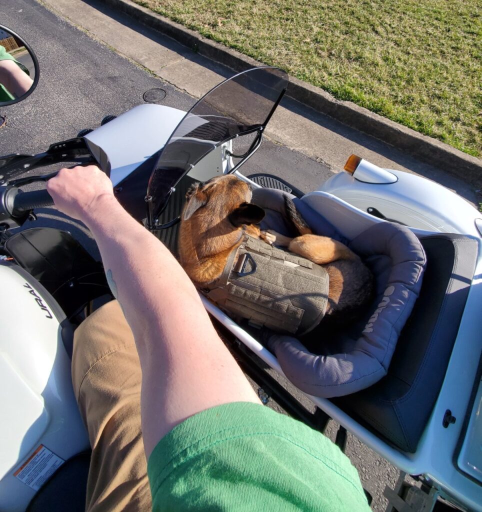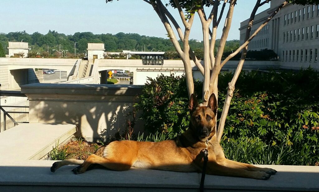 Reisja is a hardworking, protective, and loving (to her pack) canine who served from 2012 – 2021. She is an Alpha Female who, in her retirement life, has adjusted to being part of the family. She worked for the DOD throughout Virginia, Washington DC, Maryland, Indiana, and Pennsylvania. She is a very obedient canine who assisted in working with dogs that had issues adjusting to different situations. She has traveled with the family on numerous vacations, including trips to Maine, Canada, and Upstate New York. She likes riding in her motorcycle sidecar (2021 Ural) and trips to Home Depot & Lowes.