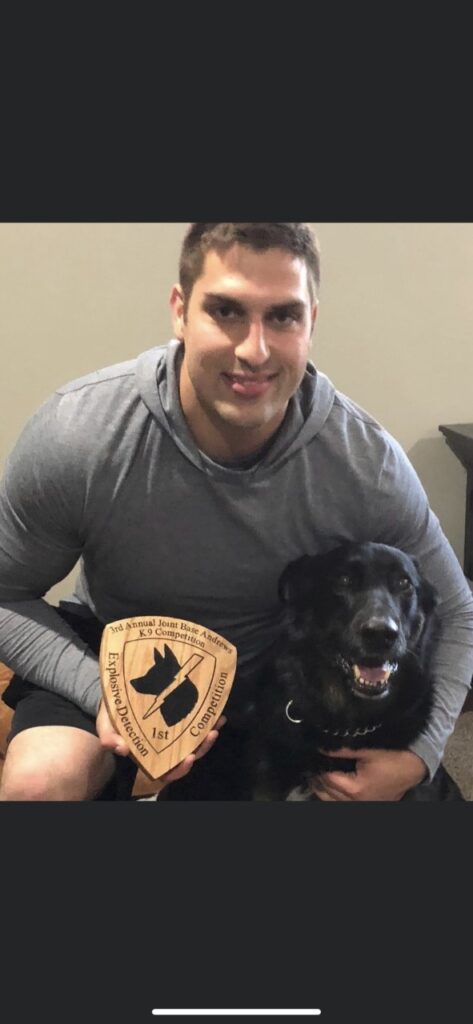 Rex has worked for DOD for 9 years and specialized in explosive detection. He won first place in 2018 at the 3rd annual joint base andrews k9 competition. Rex is enjoying retirement living with his handler, wife, and two little brothers (Jameson 2, Carter, 11 months). His favorite snack would be anything with cheese or peanut butter. In his downtime, you can find Rex laying in his dog bed or outside playing with Siba (new K9).