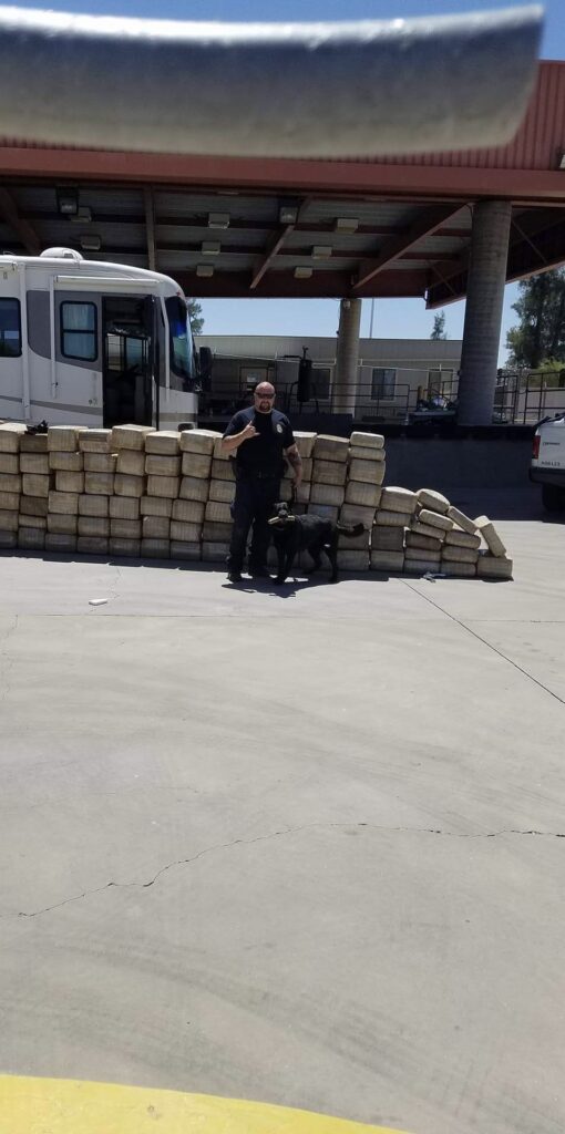 K9 Saxo began his Customs and Border Protection K9 career in 2015 at the Canine Center in Front Royal, VA. Upon Saxo’s graduation he was deployed to the USA/ Mexico border in Arizona. For the next 5 years Saxo would work in temperatures exceeding 110 degrees in rugged conditions. Saxo would retire in 2020 and go home with his dad to relax and enjoy some A/C. Saxo retired having been the top seizing K9 at his assigned duty location and was directly responsible for the interception of tens of millions of dollars of illegal narcotics.