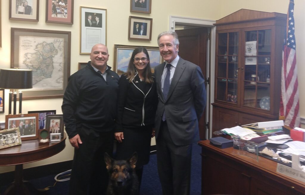 I am Shea, I was born to be a Guide Dog for the Blind but had a keen nose and just wanted to sniff everything. So at a young age I had a career change and moved into the Explosive Detection line of work. Throughout my career I worked numerous tours in the Middle East. Everyone there loved me, they even put my name on the wall in a few places. In my downtime when I was in the US, I got to go work at professional sporting and concert events, it was so much fun. I even worked the Baseball All-Star week in DC. Now that I am retired, I love walking on the beach and of course still play ball. My favorite treats are the vegetables my mom feeds me when she is cooking. I also enjoy playing with my sister, but she leaves to go work in the Middle East now, so I miss her when she’s away.