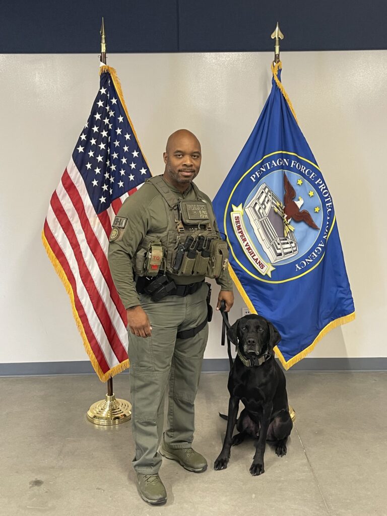 K9 Sjeff used his nose for close to 7 years as dual explosive/vapor weight detection (PBIEDD) for the Pentagon Protection Agency. Sjeff was in the first graduating class of PBIEDD K9s used in the Pentagon. He enjoys playing catch with a ball & chewing his bones. His chill attitude & lovey spirit makes him a favorite to all around him.