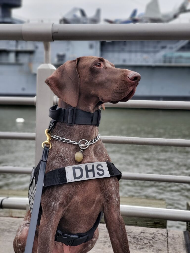 Sparta has traveled to Washington for the president’s inauguration and the Super bowl in Los Angeles. His home-base for work was JFK International airport. He worked side by side with multiple K9 Agencies like NYPD, PAPD, FBI, ATF,Secret Service and the Coast Guard K9 units. He loves to play with his over sized tennis ball, his K9 brother and his human brother. He also loves to go for runs and when possible a dip in the water.