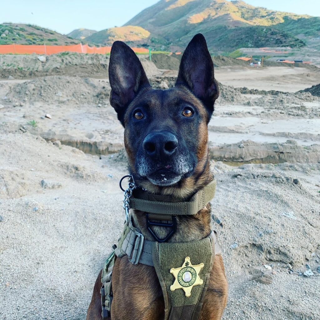 Storm came to the Riverside Sheriff’s Office from the Netherlands. Storm is trained in Dutch and loves unlimited belly rubs. Storm also has his own Instagram account with over 1700 followers. Storm has traveled to San Diego and Las Vegas, where he has competed in numerous K9 Trials. Storm was assigned to patrol as a Dual Purpose K9 and also was trained to track. Storm loved work more than you could imagine. His service to the community was his favorite thing, whether visiting Starbucks for a puppachino or getting belly rubs from the kids. There was nothing he did not love about his job. Storm later on was assigned as 1 of 4 K9’s attached to the Swat Team working takedowns and search warrants throughout Riverside County.
