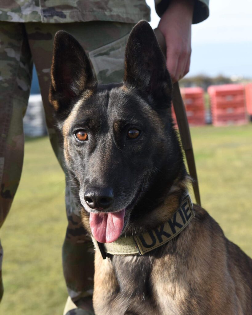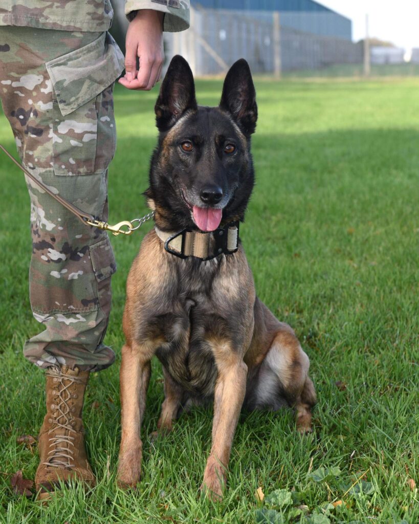 Served in United States Air Force, stationed in England. Served as a Dual Purpose canine (Patrol/Explosives). Conducted sweeps for many Distinguished Visitors (SecDef, SecAF, CMSAF etc) and deployed to Africa. Ukkie doesn’t mind dressing up and loves hanging out with mom.
