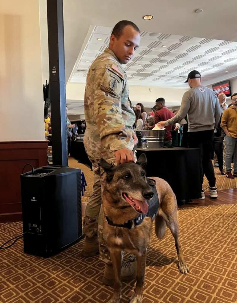 VVandal is a prior patrol explosive dog out of Miesau, Germany. He has several deployments overseas. He has traveled to Germany, Poland, Belgium, France, Egypt, and Afghanistan. He loves getting pets, sleeping, eating, and getting so much attention.